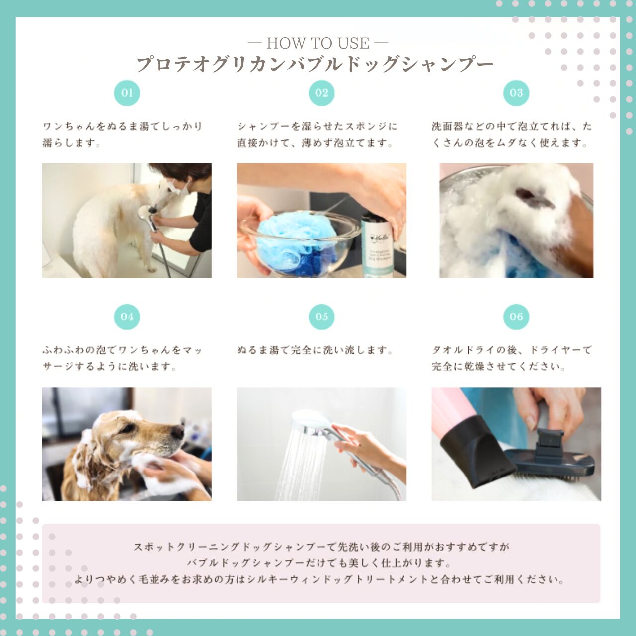 ★ユリックスの犬用シャンプーを初めてご利用の方はスポットクリーニングとバブルシャンプーをセットでご使用下さい。