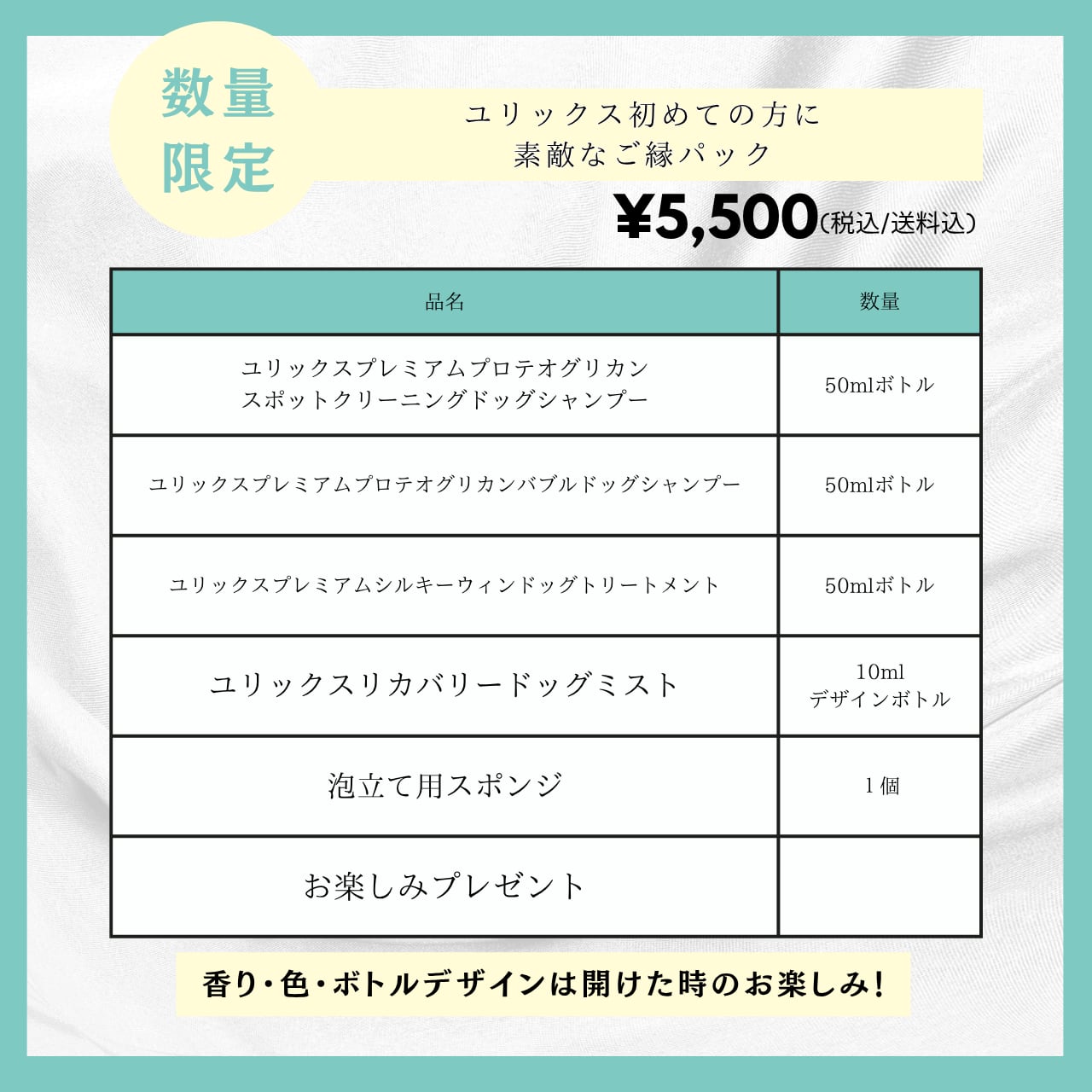 ※製品の色・香り・ボトルデザインは開けた時のお楽しみ!